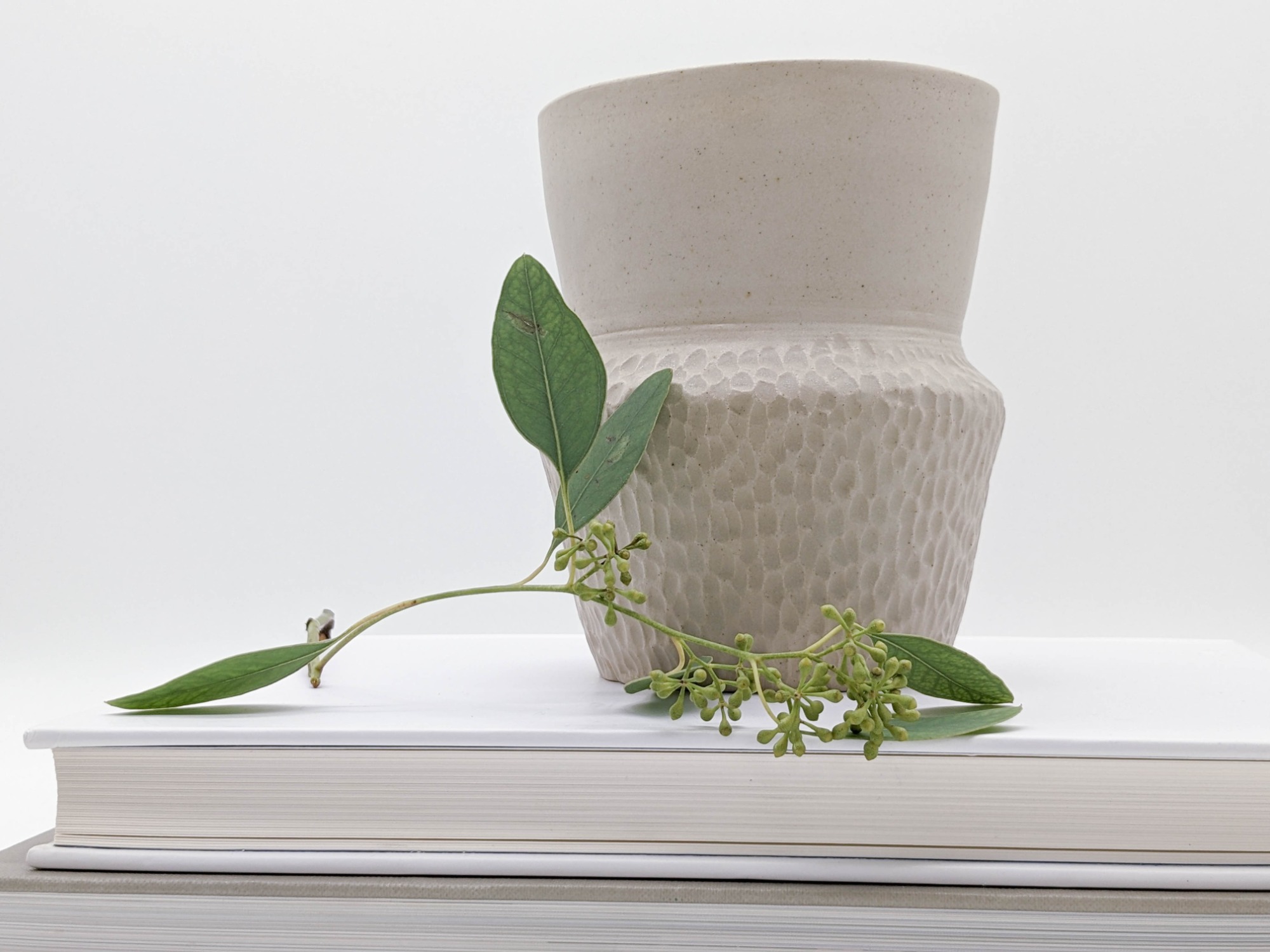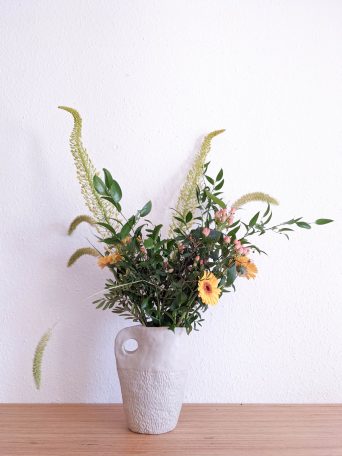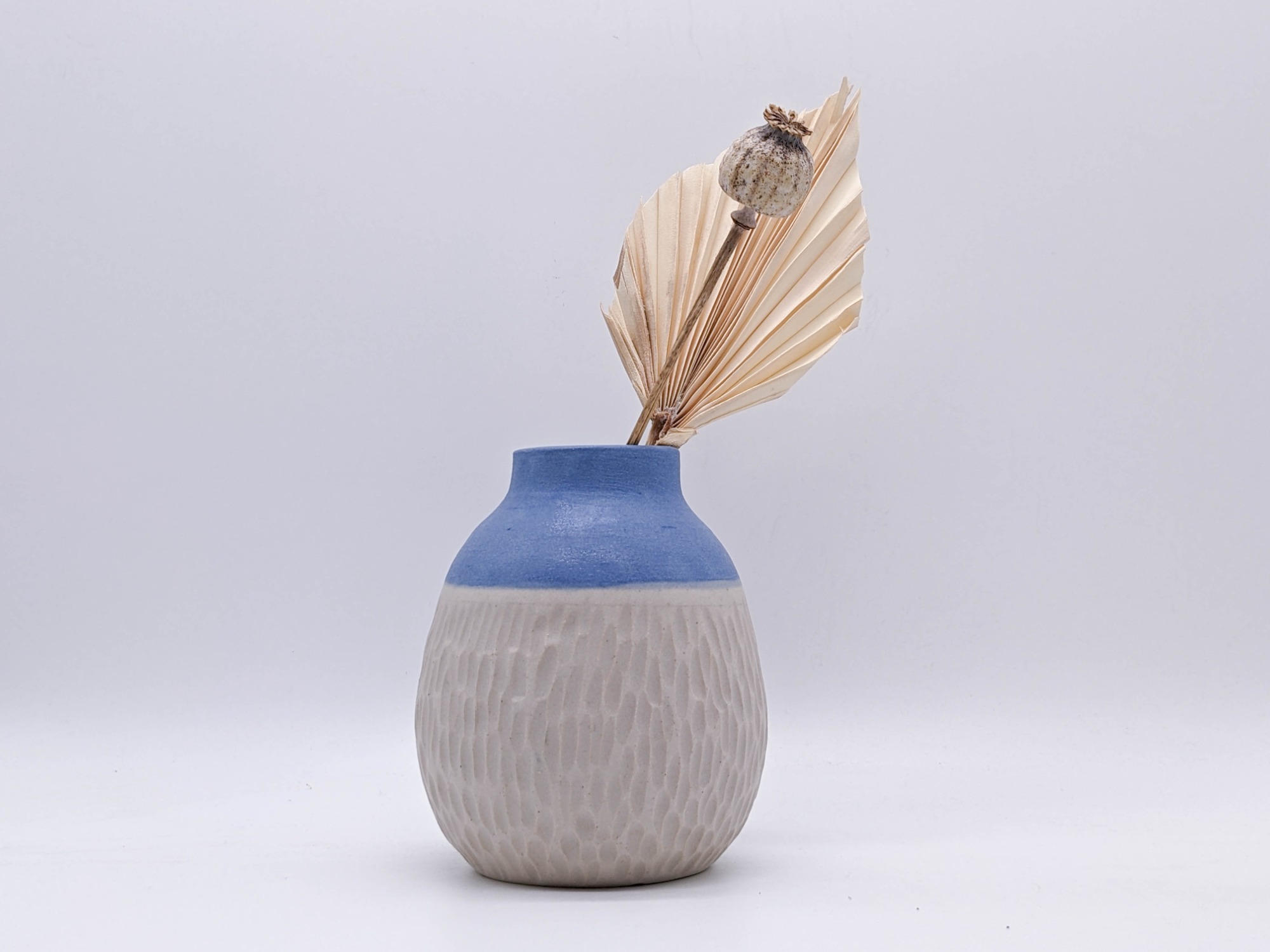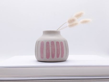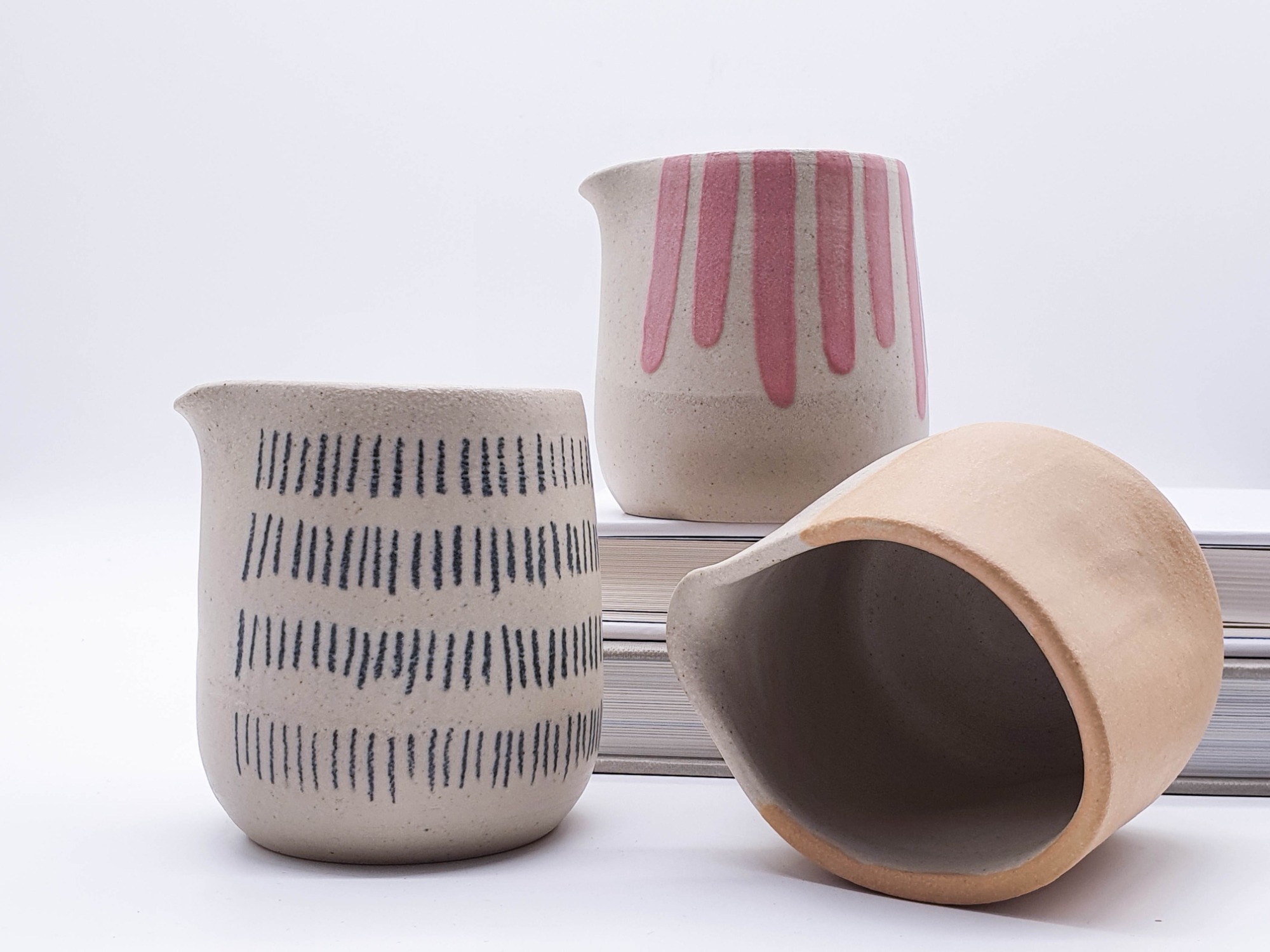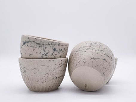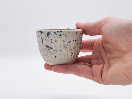 Meine Keramik wird von Hand getöpfert, gestaltet, glasiert und zweifach gebrannt zu Steinzeug-Keramik. Steinzeug-Keramik ist besonders widerstandsfähig und durch die hohe Temperatur während des Glattbrands auch ohne Glasur wasserfest.
